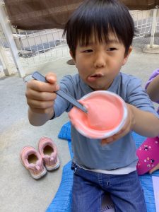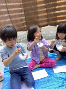 お昼寝の時間に外に出て『ホイップアート』をしました🍦