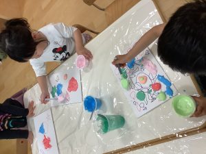 すいか組のお友だちにシャボン玉を作ってもらいました🫧
