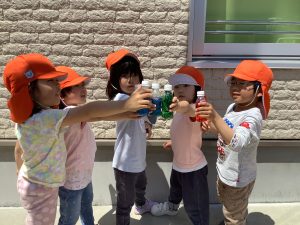 完成したジュースはお友だちと乾杯しながら飲む姿が見られましたよ![]()
