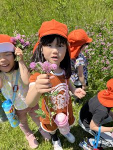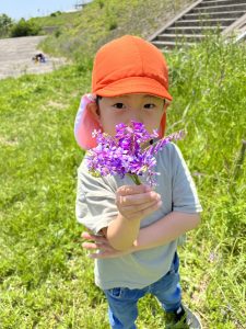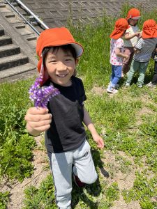 見つけた花を園に持って帰ってきて乳児クラスのみんなにも見せてくれました👀