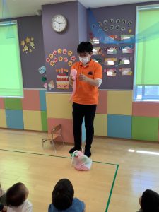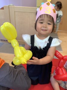 先生の出し物は風船で動物を作ってくれました🐰