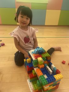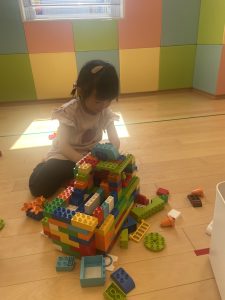 いつもはお友だちと一緒に作ったり、分けっこしたりしながら使うブロックですが、今日は好きなだけブロックを使って、大きな家を作りました![]()