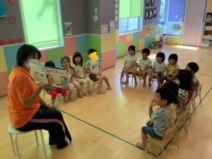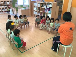 「みんなこんな格好で寝てる?」に「そんな格好してないよ」やひろくんの動きを真似っこしながら見る子ともいましたよ。面白かったようで、「もう1回見たい!!」とリクエストもいただきました![]()