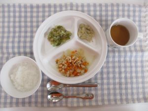カレーの匂いがしたのか、保育室から「カレー!」と元気な声が聞こえてきました。