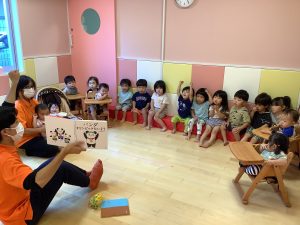 今週の絵本ブログは、乳児クラスの絵本の読み聞かせの様子です。