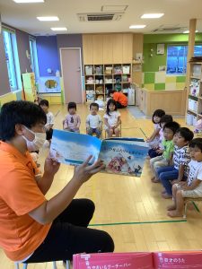 メロン組さんとすいか組さんは、色々想像しながら見ている様子でした。お話しを楽しそうな表情で見ていましたよ![]()