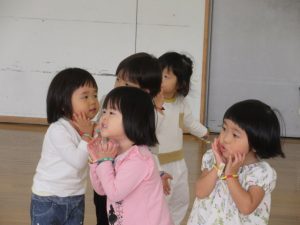 元気いっぱいのすいか組!円陣を組んで子どもたちの掛け声からスタート!