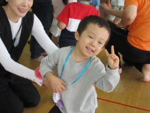 元気いっぱいのいちご組さんは、ニコニコ笑顔いっぱいで楽しんでくれていました