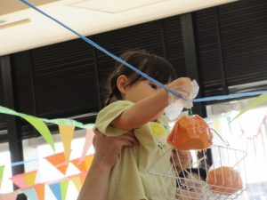 果物ゾーンに着くと抱っこをしてもらい高い位置にある果物を取りました🍎🍊