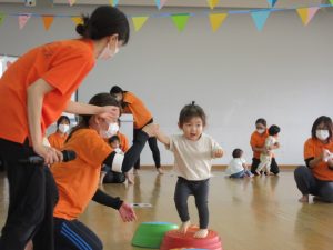 サーキットでは保育士と手を繋ぎながらゆっくりと慎重に進んでいきます!