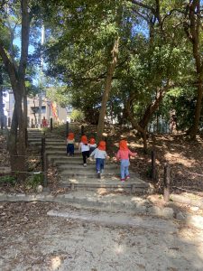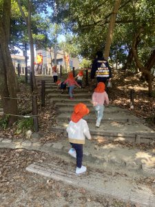 3クラス合同で近くの神社にお散歩に出かけました!