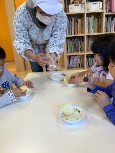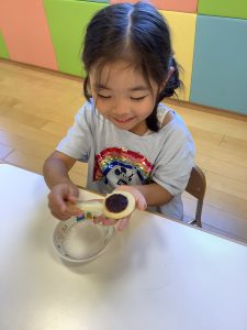 どら焼きのあんこを入れるクッキングをしました!