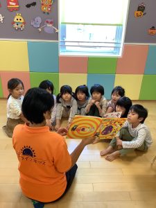 今日はすいか組の絵本の読み聞かせの様子です。