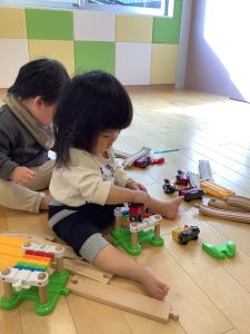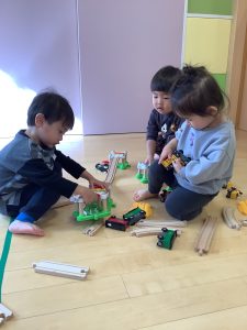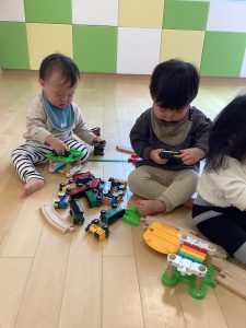 いちご組さんはお友だちと一緒に線路を繋げたり電車を走らせたりしていましたよ![]()