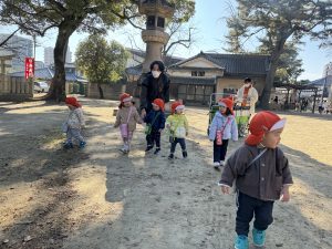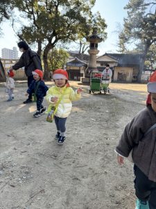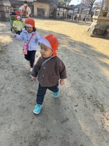 乳児クラスは初詣をした後、そのまま神社の周りを歩いて探索をしました!