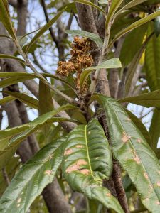 帰りはびわの木を見つけました!!実はなっていないですが、実が出来ていたであろう場所に興味を持って見ていました![]()