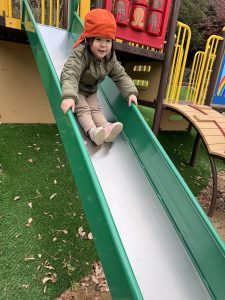 勢いよくすべり台を滑ったりしました!