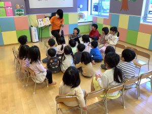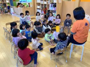 「お水の顔つけられるよ!」や、「木に登れるよ!」などみんなで言い合いっこをしながら絵本を見ました。色々なことができるようなって嬉しいね![]()