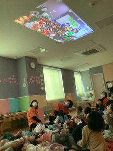 普段は出来ないプロジェクターを天井に映して、みんなで寝転んで見ましたよ👀