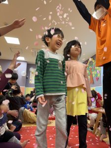 とびっきり笑顔の子どもと綺麗なフラワーシャワー🌺