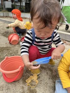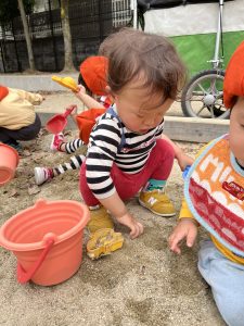 初めは砂に触れる事を嫌がっていた子どももあっという間に楽しくなり、お友だちと一緒に遊んでいましたよ![]()