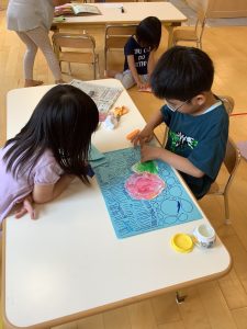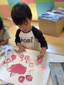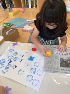 その後、花びらの形をしたスポンジを使って花びらを表現しました!