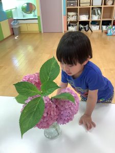 お散歩中に綺麗な紫陽花を見つけたので、紫陽花の製作をしました!