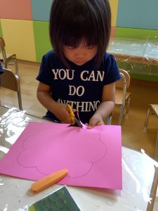 まずは紫陽花の形をハサミでチョキチョキ✂️