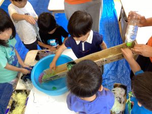 最後は流しそうめんならぬ流し春雨をしてみました!