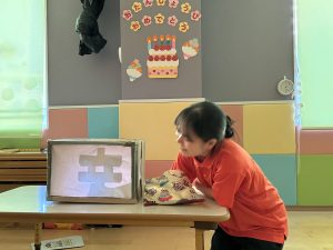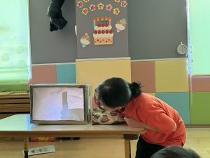 さぁ、これはなんでしょう?とっても難しいクイズが始まりましたが、子どもたちはちょっとした影の動きを見逃しません!「ソフトブロックー!」正解は…