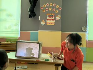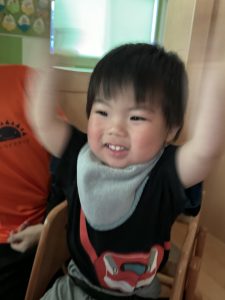 いちご組のお友だちはちょっぴり恥ずかしい…先生と一緒に2歳ということが出来ましたよ