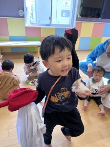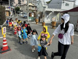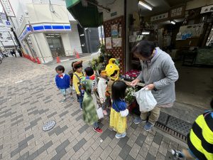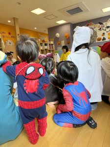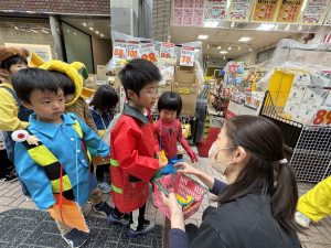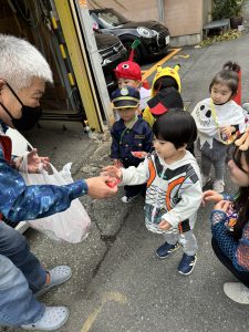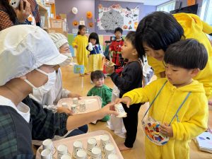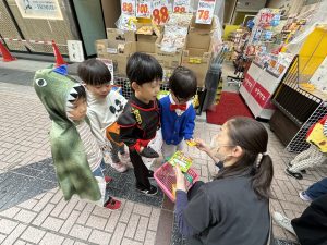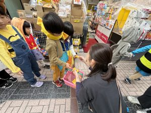 幼児クラスの子ども達は「トリックオアトリート!」「ハッピーハロウィン!」など言ってからお菓子をもらっていましたよ🍪