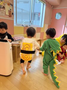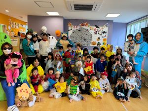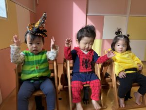 子ども達にはお家から仮装をしてきてもらい登園してもらいました!子ども達の可愛い仮装に保育士はメロメロでしたよ![]()