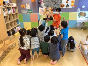 今週の絵本は「ばけばけばけばけ ばけたくん かくれんぼの巻」です。