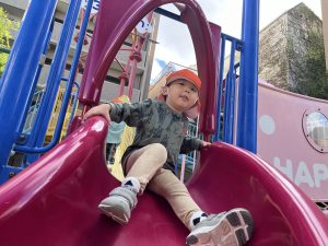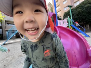 「滑り台、大好きなんだ〜💕」この表情を見れば大好きなことが丸わかりですね