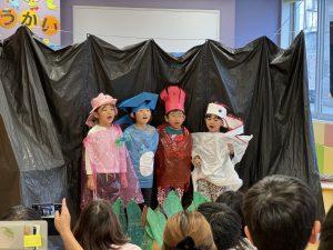 練習の時から積極的にセリフを言ったり、セリフを忘れていたお友だちには声を掛けに行ったりと、とても頼もしい5歳児さん達でした!緞帳の前に立ちプログラムを言う大役も!練習期間から本番までよく頑張ってくれました!ありがとう![]()