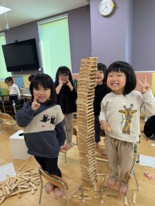 椅子に乗っている子ども達よりも高いのでとても大きな作品が完成しました!