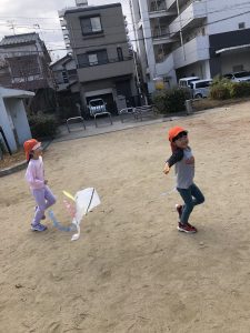 そして年明けには公園に行って凧上げ、駒回しもしましたよ!