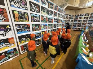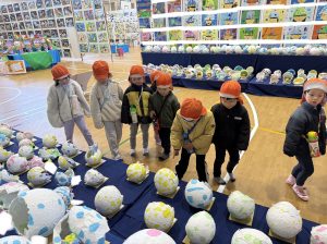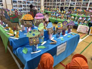 体育館の中には子ども達の作品がたくさん並んでいました!