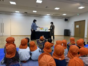 まず初めにホールでお話を聞いたり、絵本や紙芝居を見させていただきました👀✨