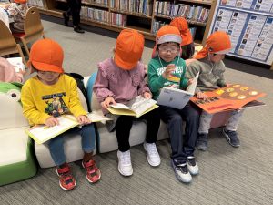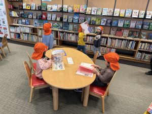 普段はお家の方と一緒にくる図書館。今日は園のお友だちと一緒だったのでとても嬉しそうで楽しそうな子どもたちでした