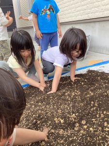 その後はみんなで順番に手で土を混ぜていきました!