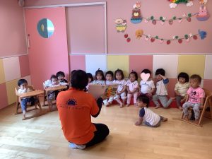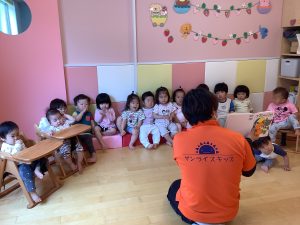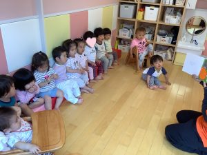子どもたちの大好きなこぐまちゃんシリーズの「こぐまちゃんとふうせん」という絵本を見ました![]()