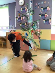 その後は「たなばたさま」の歌を歌い、各クラスの作品紹介をしました!