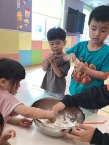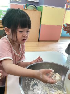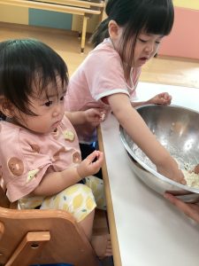 小麦粉と水を混ぜるところから子どもたちがしましたよ!