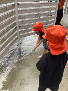 いつもより気温の少し低い曇りの日に、短い時間でしたが外で水遊びをしました!