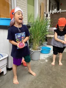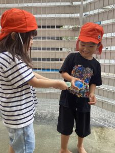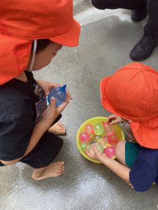 普段は水風船をすることがないので大興奮の子どもたち!!
