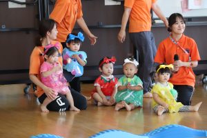 りんご組の子どもたちも衣装を着て登場!少し恥ずかしい表情を見せながらも笑顔で入場できましたよ!