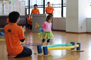 棒を乗り越えて最後はお父さんお母さんに向かってジャーンプ!