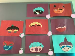 パーツごとにハサミで切って糊で貼る子どもと好きな方を選んで製作してもらいました!